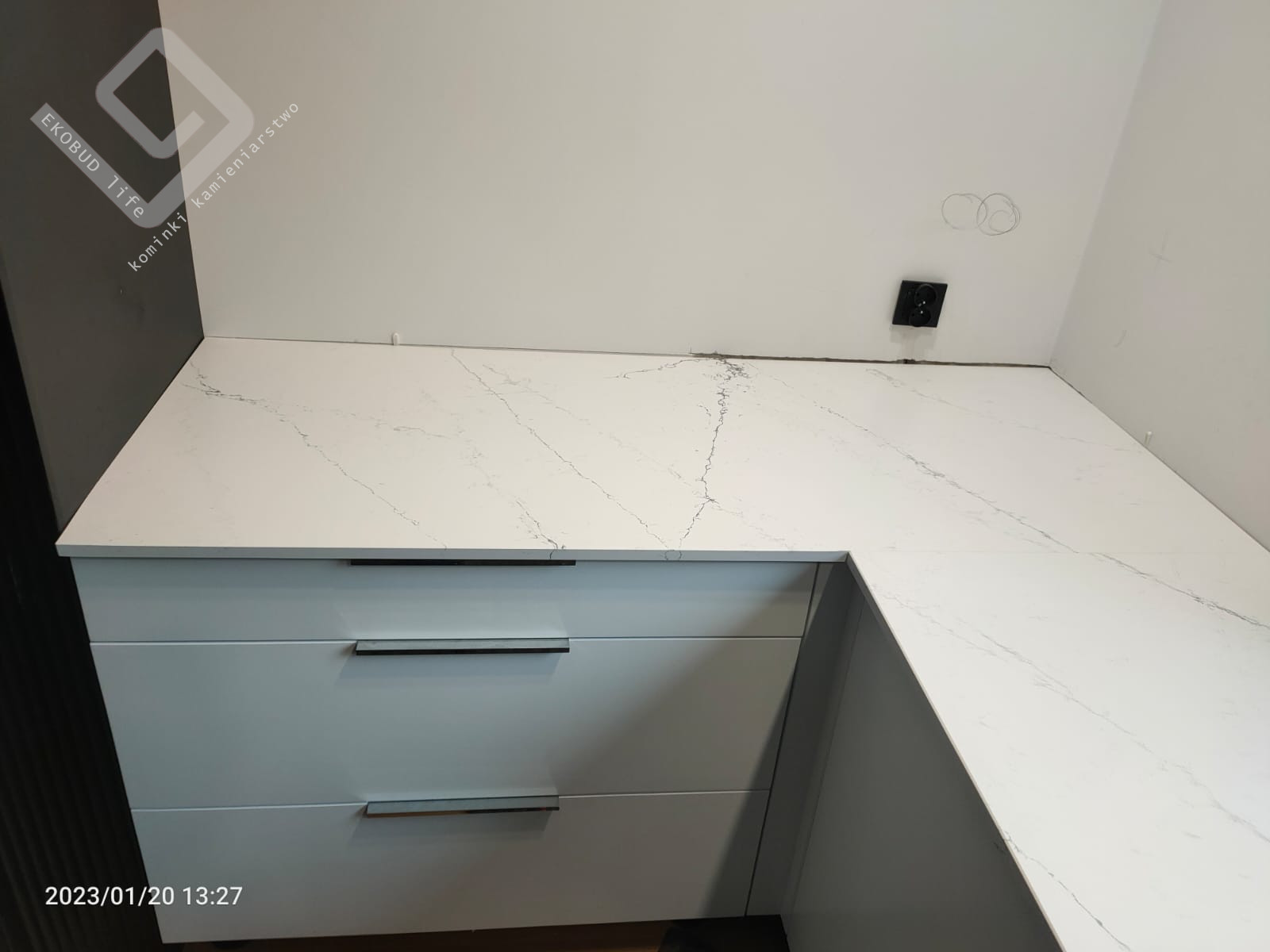 - 47. Ekobudlife / blat kuchenny + ściana/ Spiek Laminam Bianco Statuario Venato